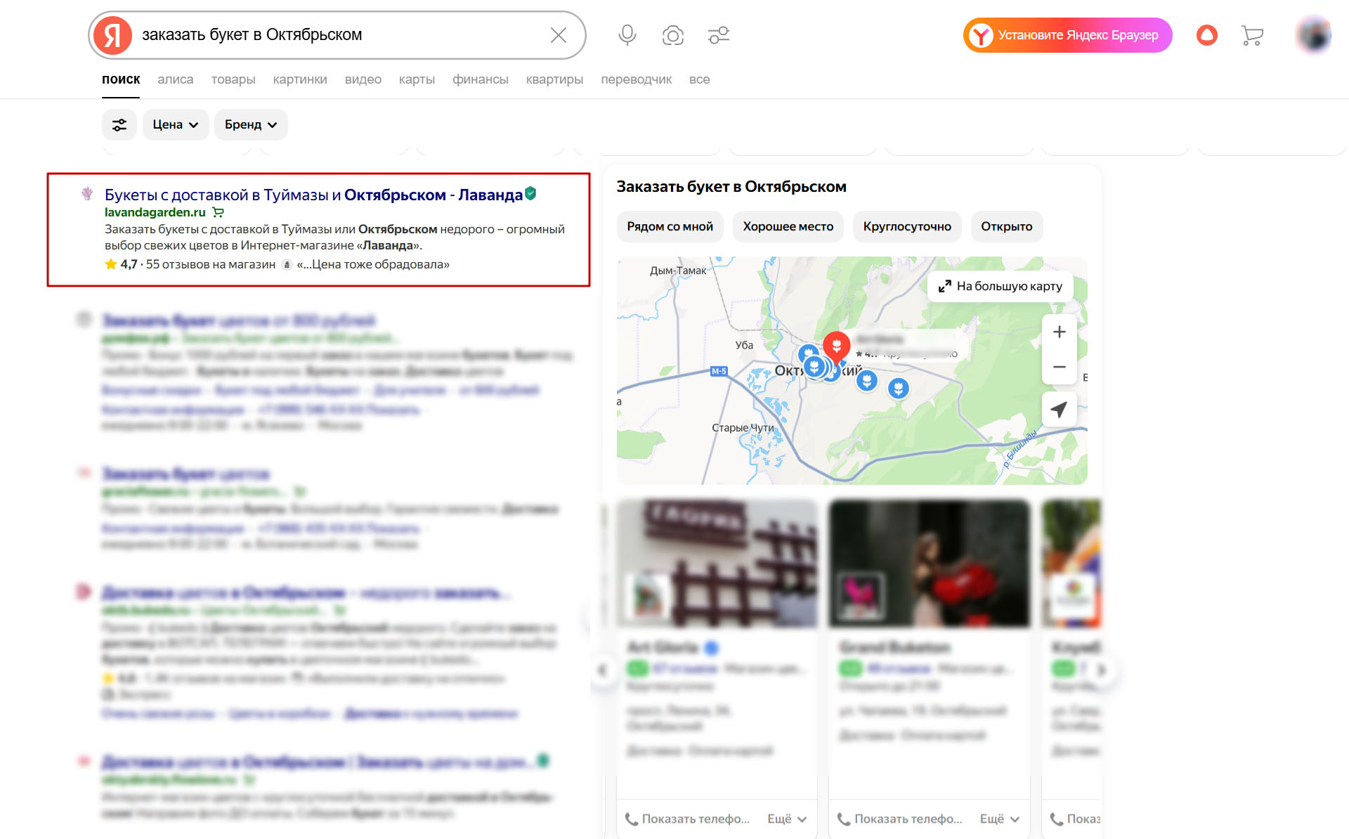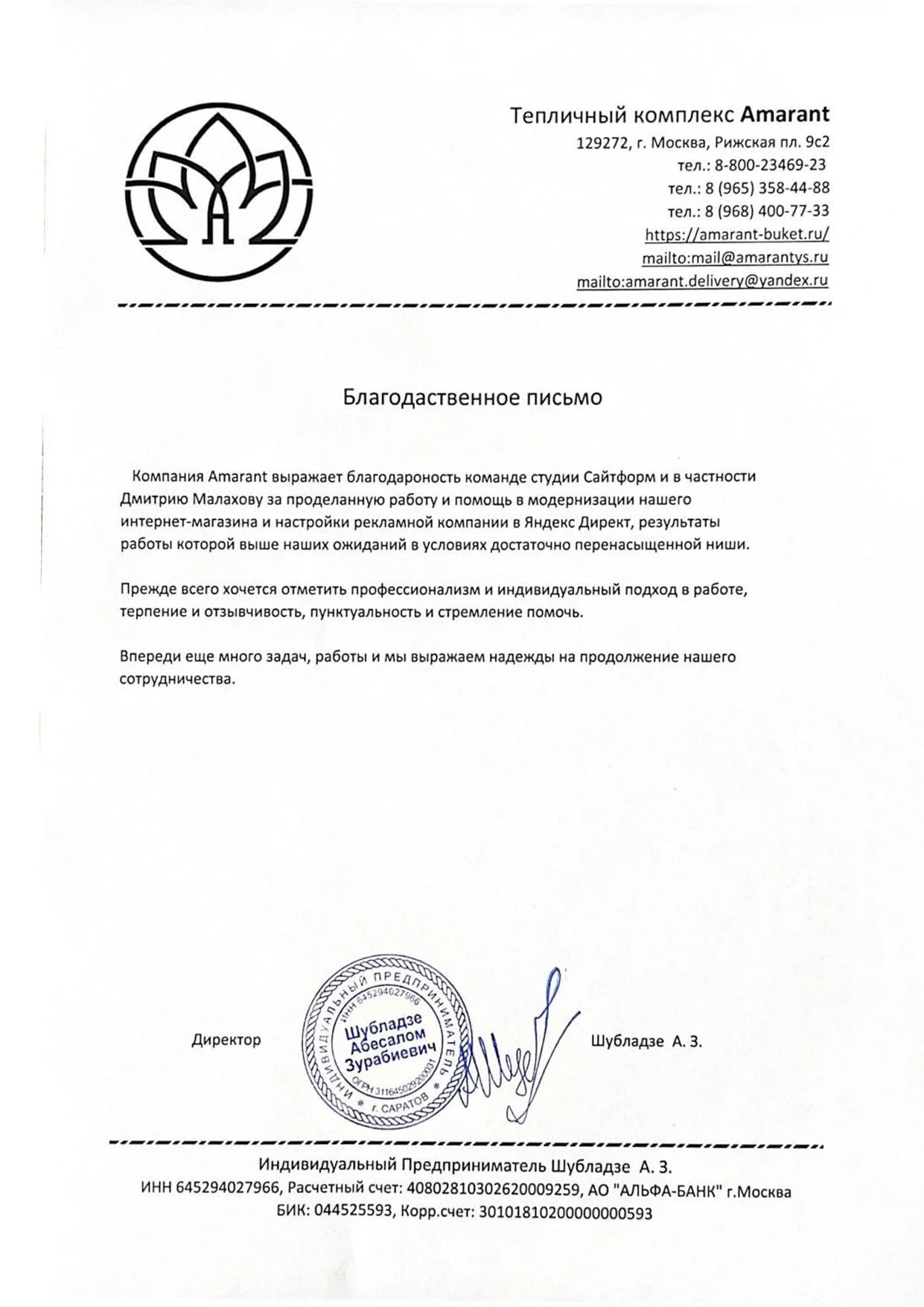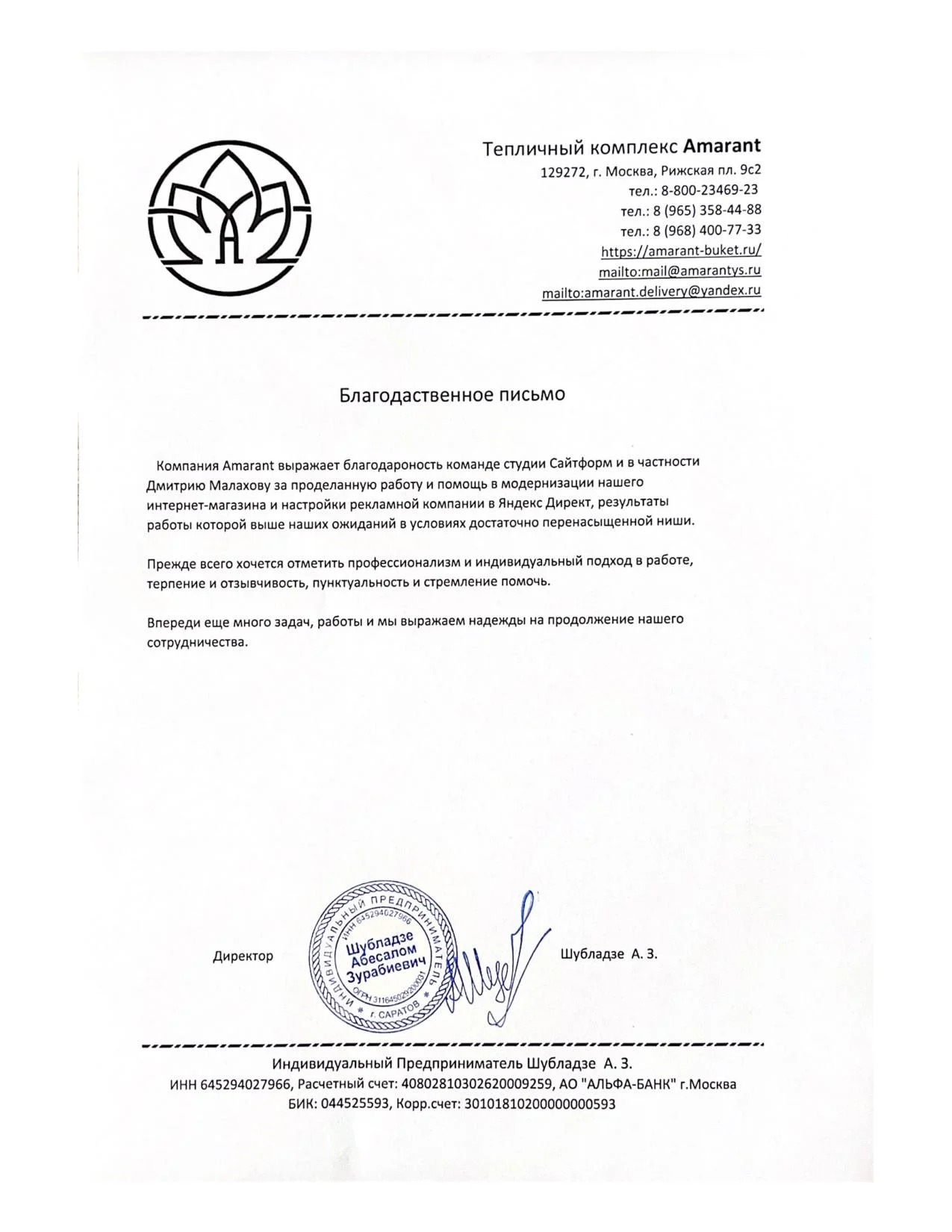 Сайт отсутствует, в сети компания сеть цветочных салонов представлена только карточками офлайн-магазинов в Яндекс.Картах