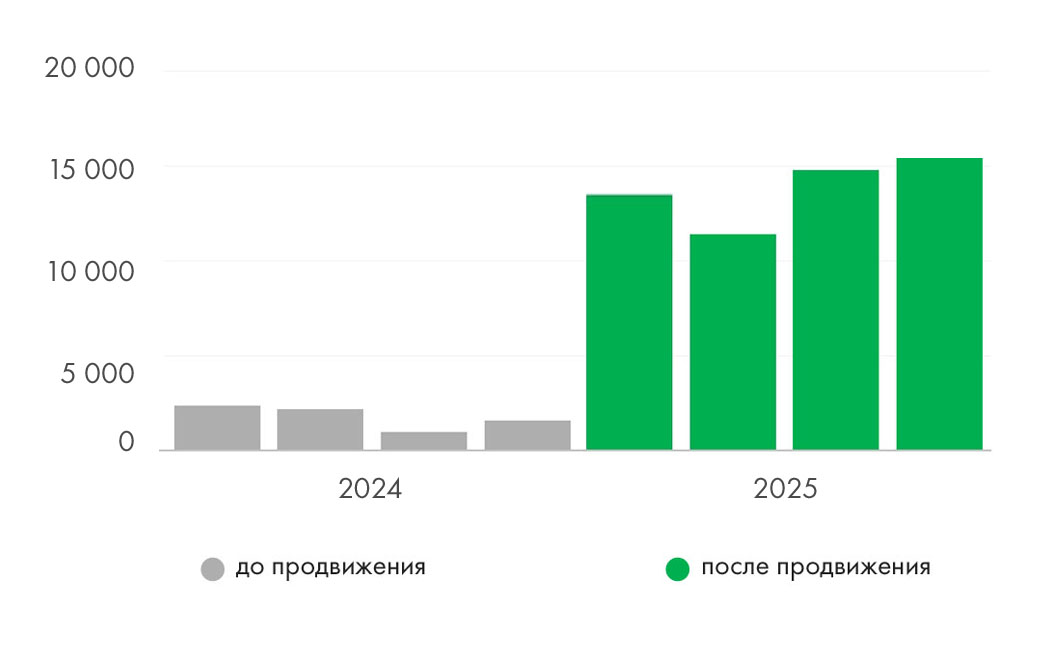 Бесплатно покажем результаты роста позиций уже в течение первых 2 недель