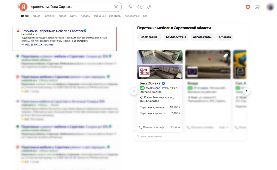 Продвижение сервиса перетяжки мебели "BestObivka"
